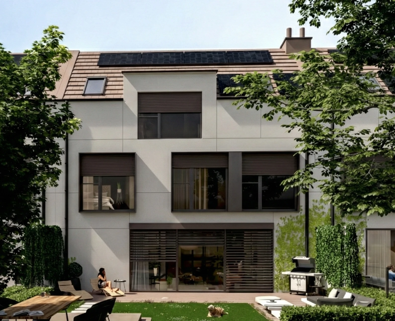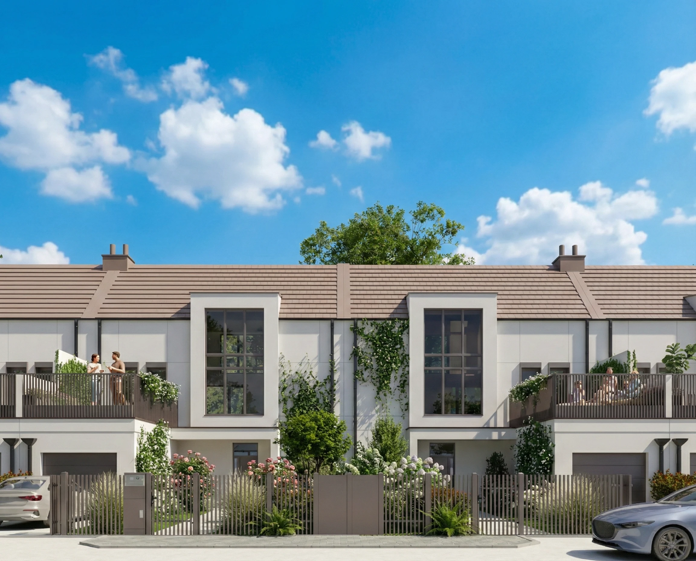 Domy zaprojektowane w idealnym układzie względem stron świata. Słoneczne tarasy